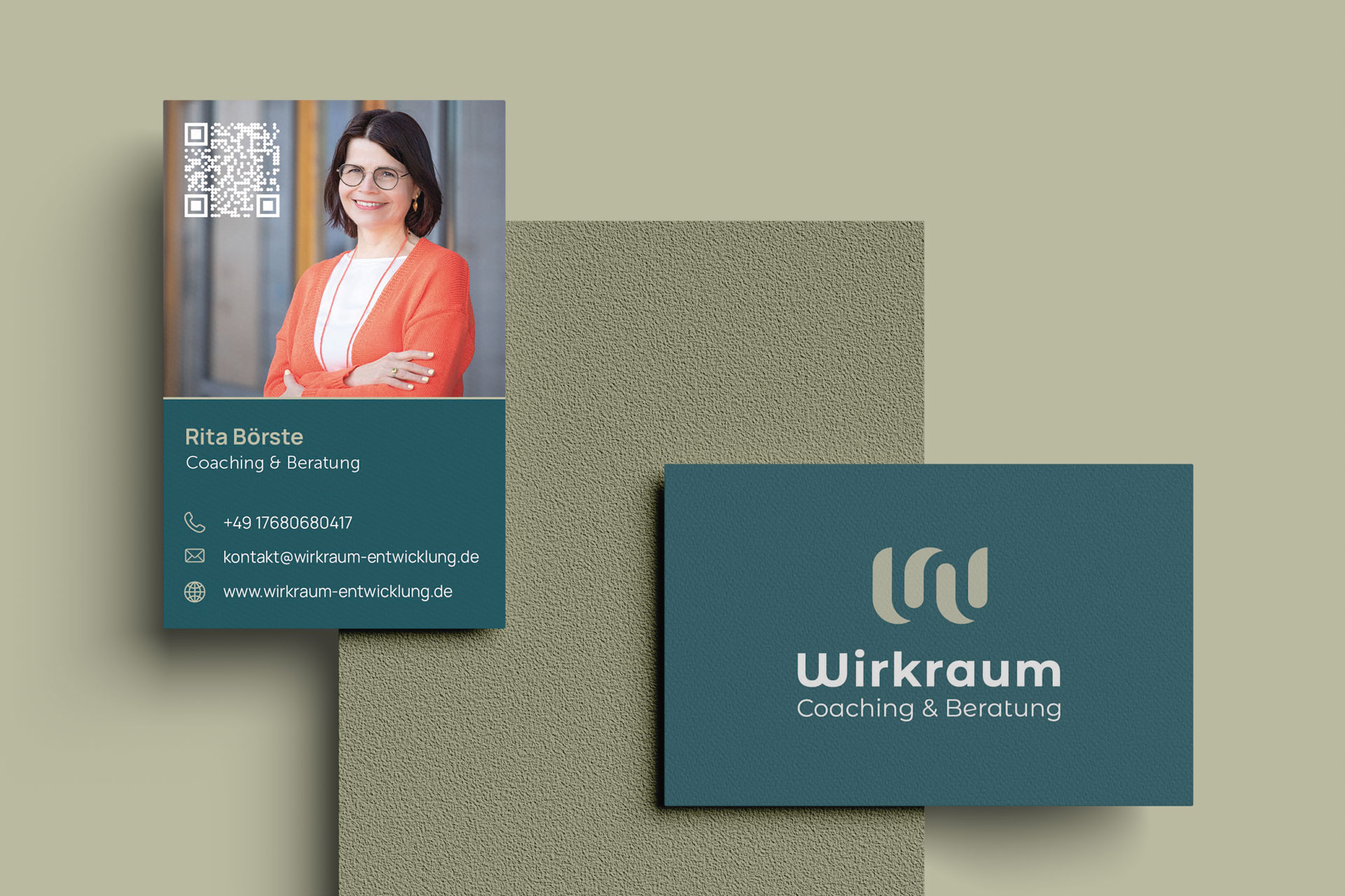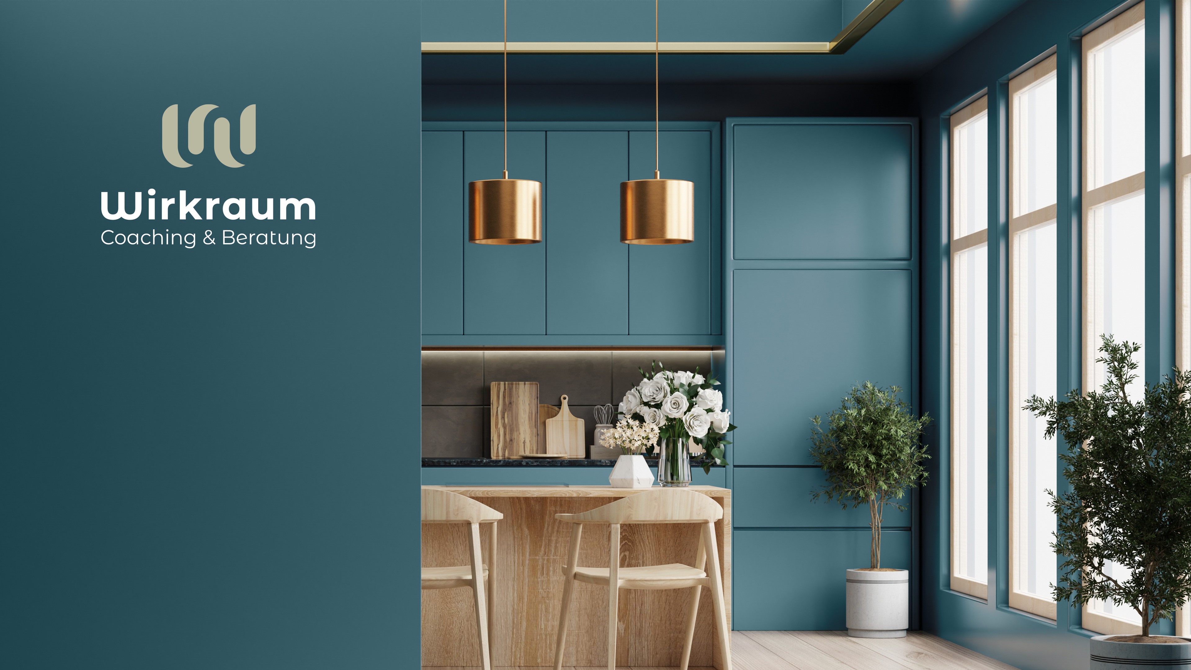 The project evolved organically from an initial brand brief into a comprehensive rollout across digital and print. A process that mirrors how Wirkraum itself operates: starting with clarity on the essentials, then expanding deliberately into every area where the brand needed to show up. Final deliverables included a logo with full visual identity system, a multi-section website, a brand guide, letter and invoice templates, business cards, stationery and an email signature. The colour system was additionally visualised in a spatial context, demonstrating that Deep Teal and Brass hold their own as a material language, not just as palette choices on screen.